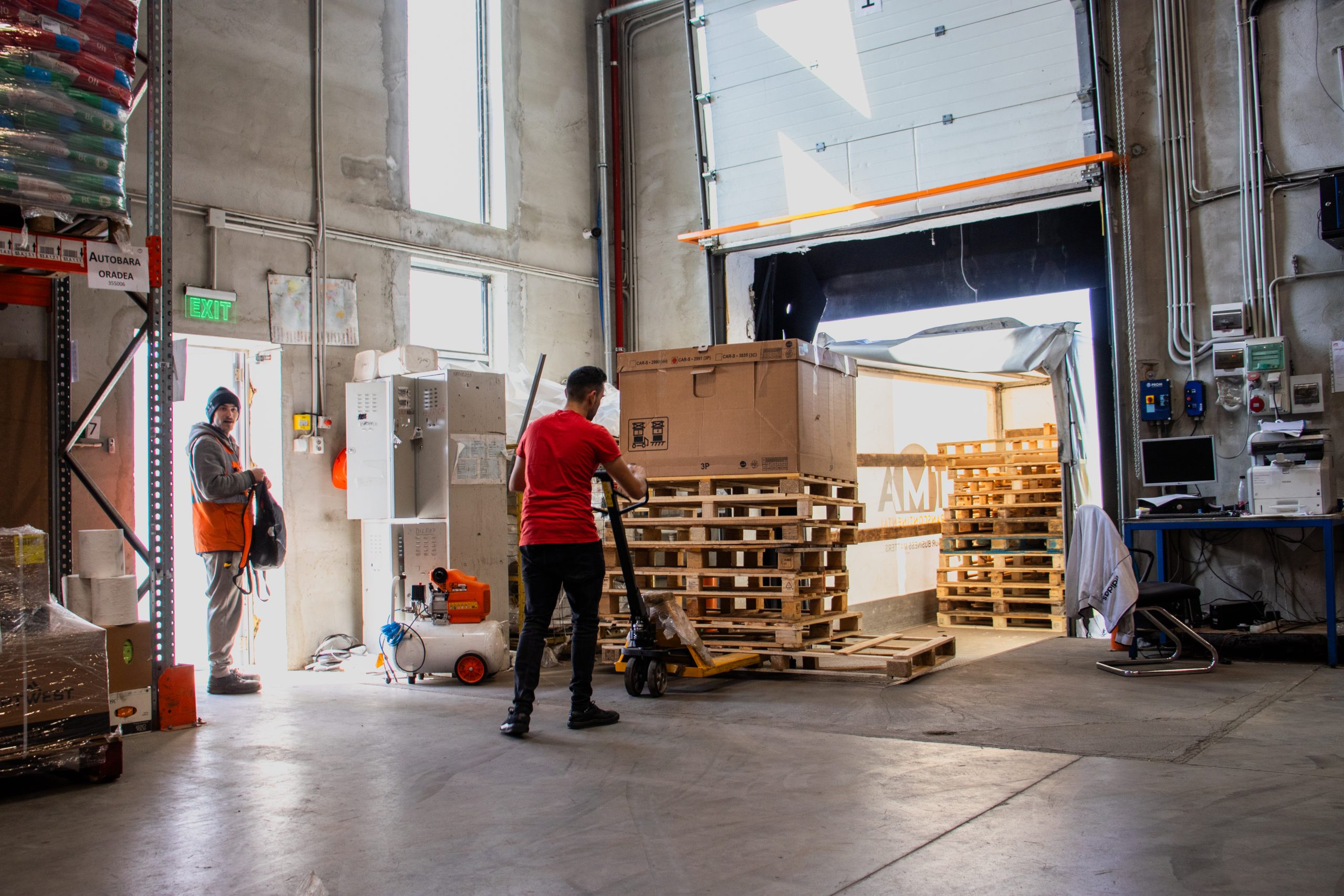 Manipularea mărfurilor dintr-un camion în altul, pentru un proces cât mai rapid și eficient.